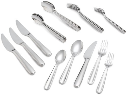 - Includes 4 each: dinner fork; dinner knife; salad fork; table spoon; teaspoon
