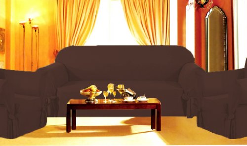 Buy Now! Sofa / Couch Cover Slipcover 3 Pc. Set = Sofa + Loveseat + Chair Covers / Slipcovers 3 Pcs SET Stripe Jacquard Fabric - Chocolate Brown color